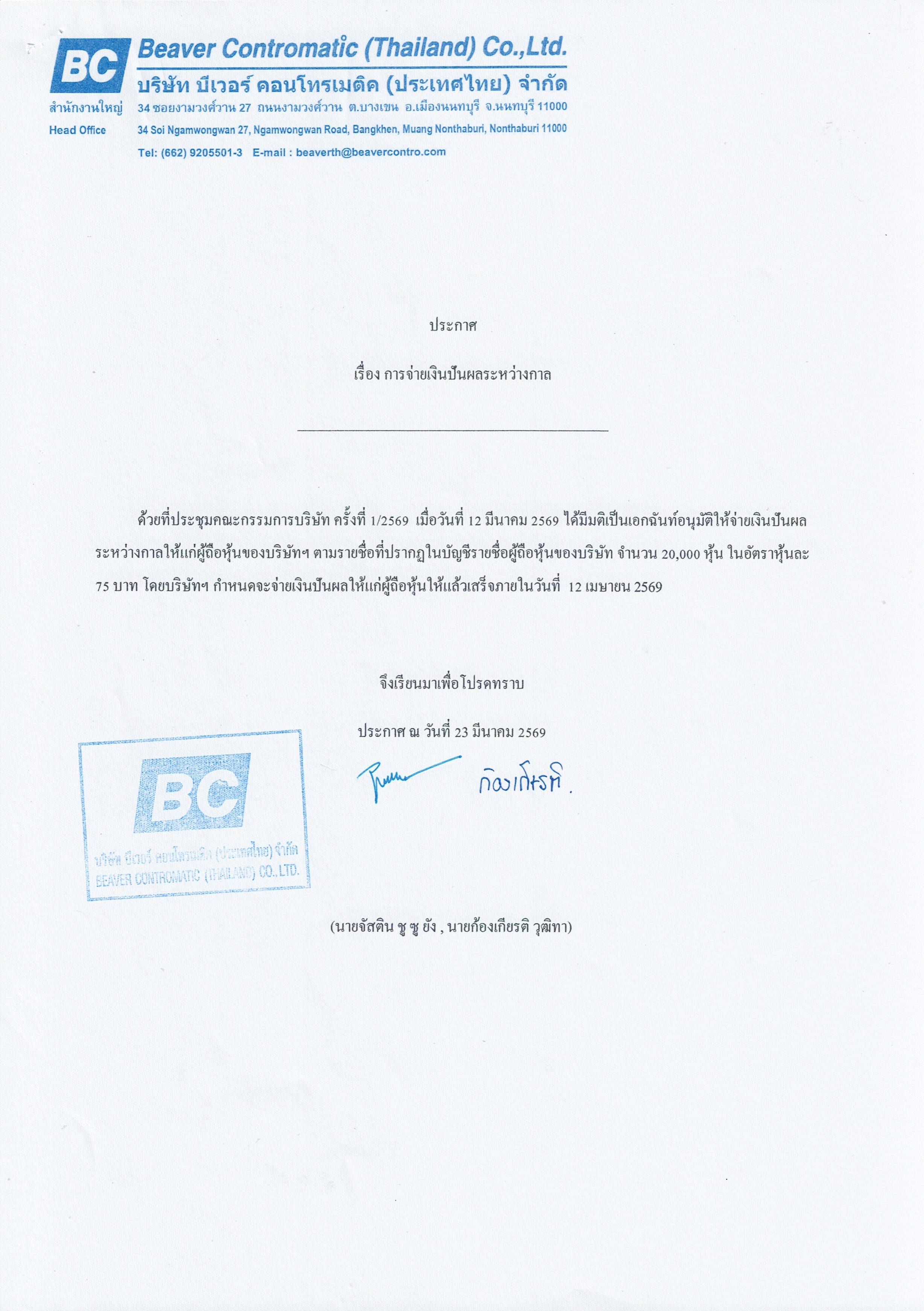 ประกาศ เรื่อง ประกาศจ่ายเงินปันผล