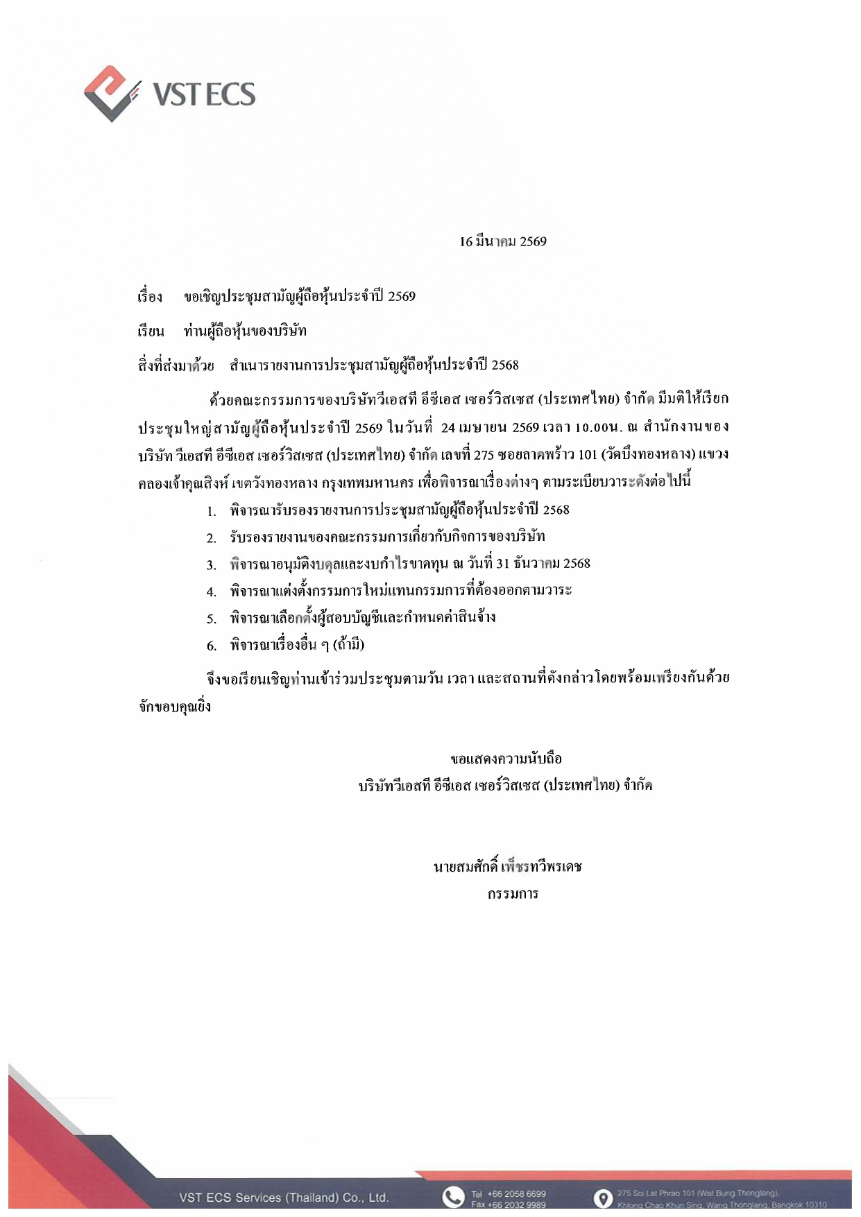 ประกาศ เรื่อง ประชุมรับรองงบการเงิน