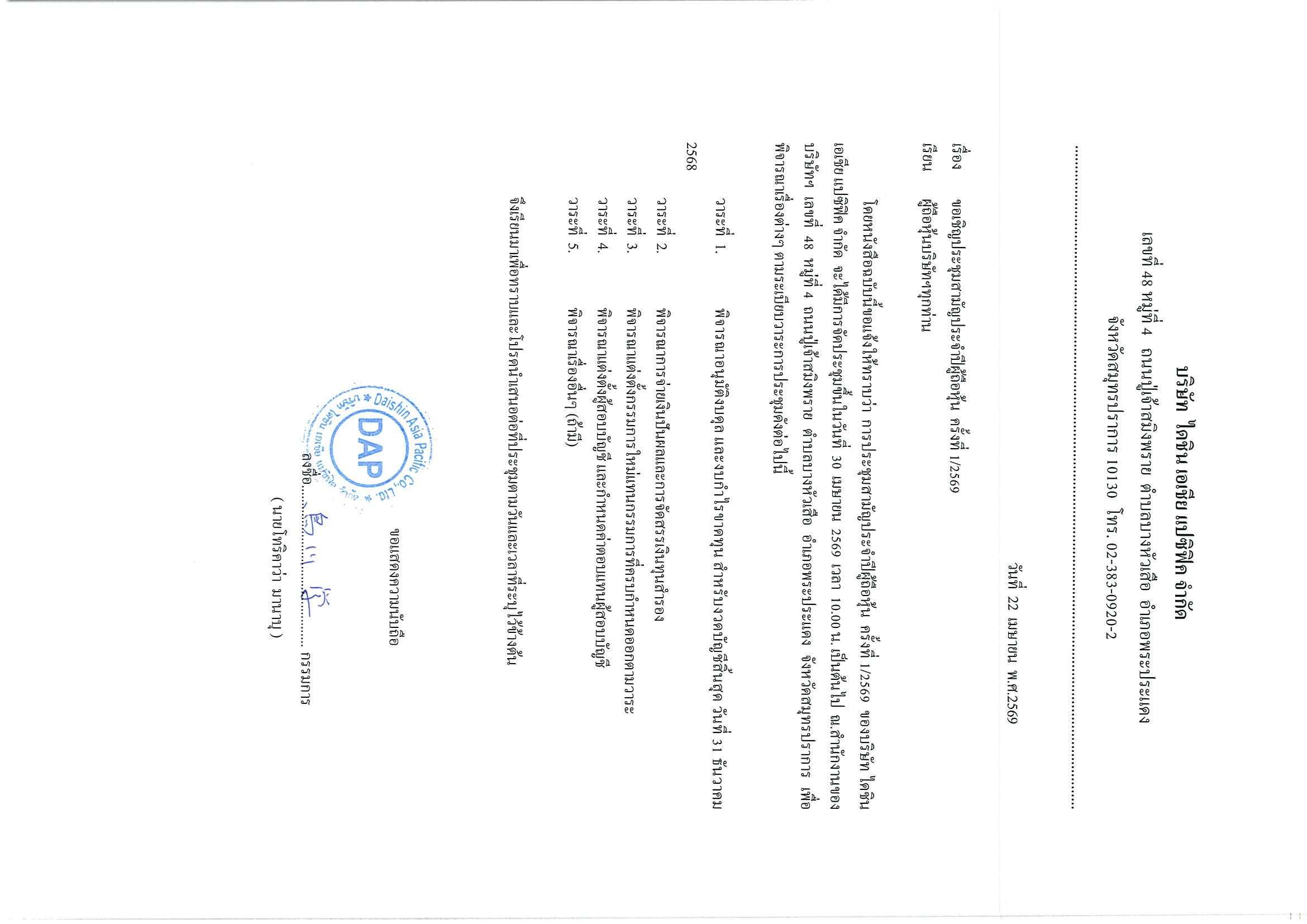 ประกาศ เรื่อง ประชุมวิสามัญ จ่ายเงินปันผล