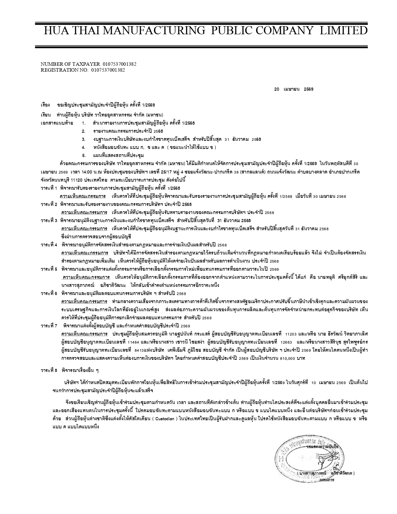 ประกาศ เรื่อง ประชุมรับรองงบการเงิน