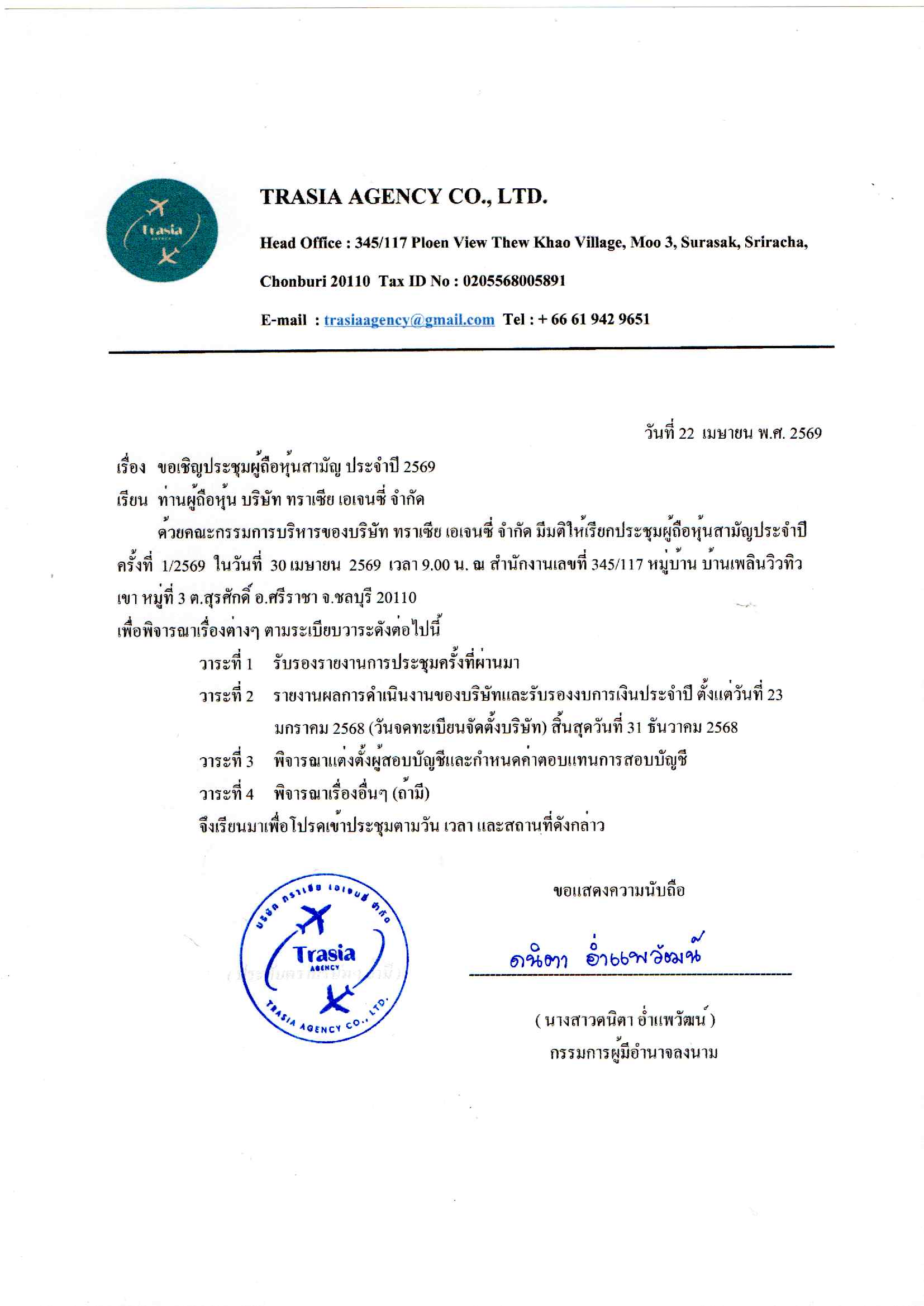 ประกาศ เรื่อง ประชุมรับรองงบการเงิน