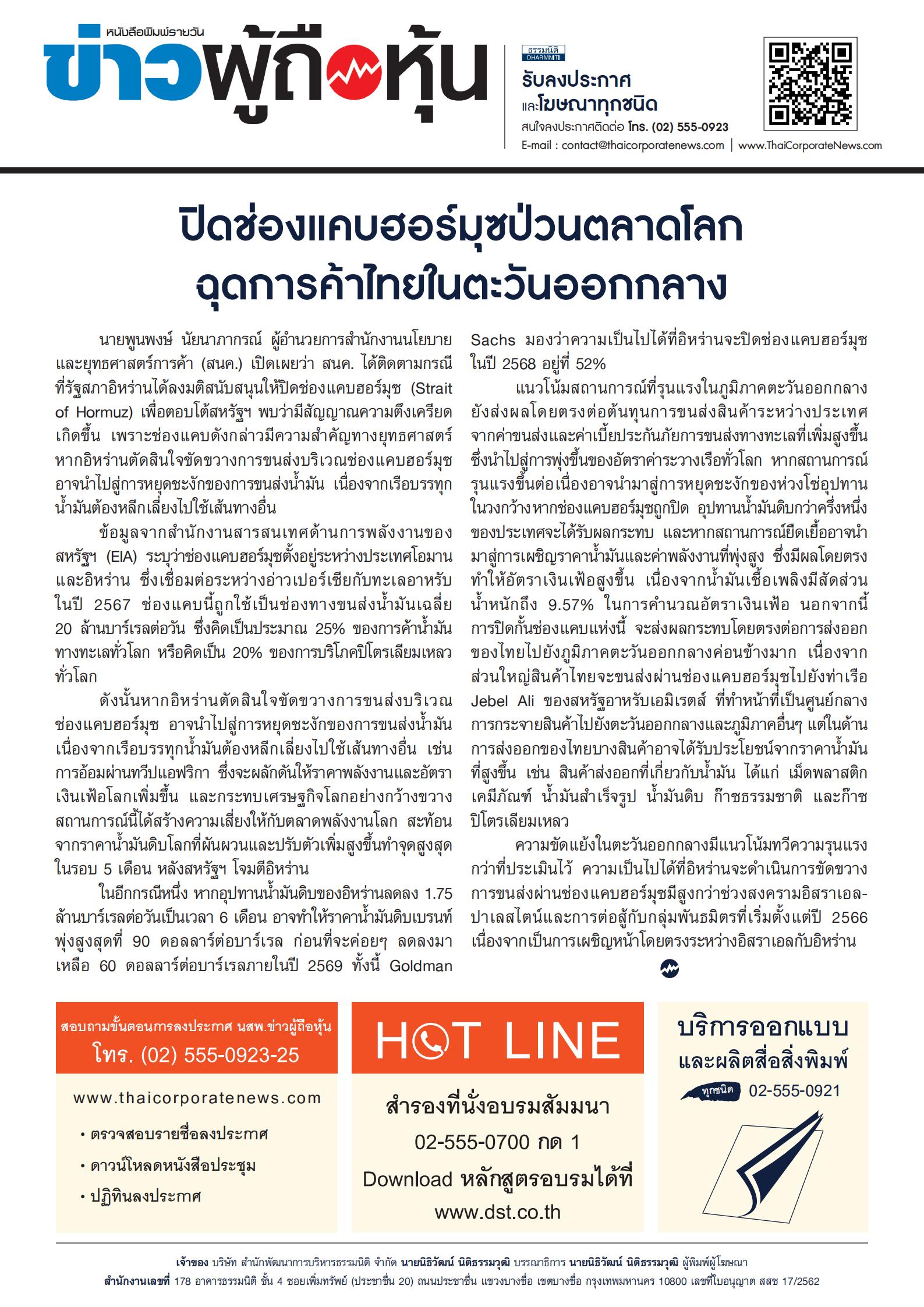 ฉบับที่ 3699 วันที่ 8 สิงหาคม 2568 ลำดับที่ 2 |