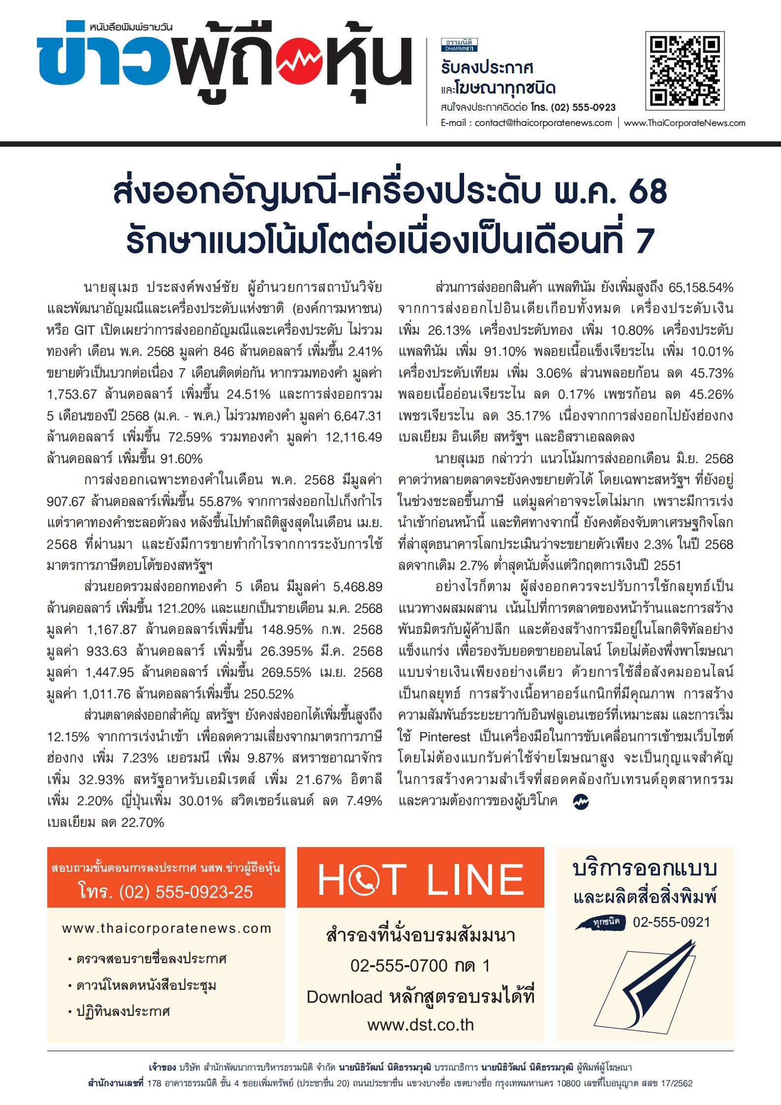 ![]() ฉบับที่ 3706 วันที่ 19 สิงหาคม 2568 ลำดับที่ 9 |